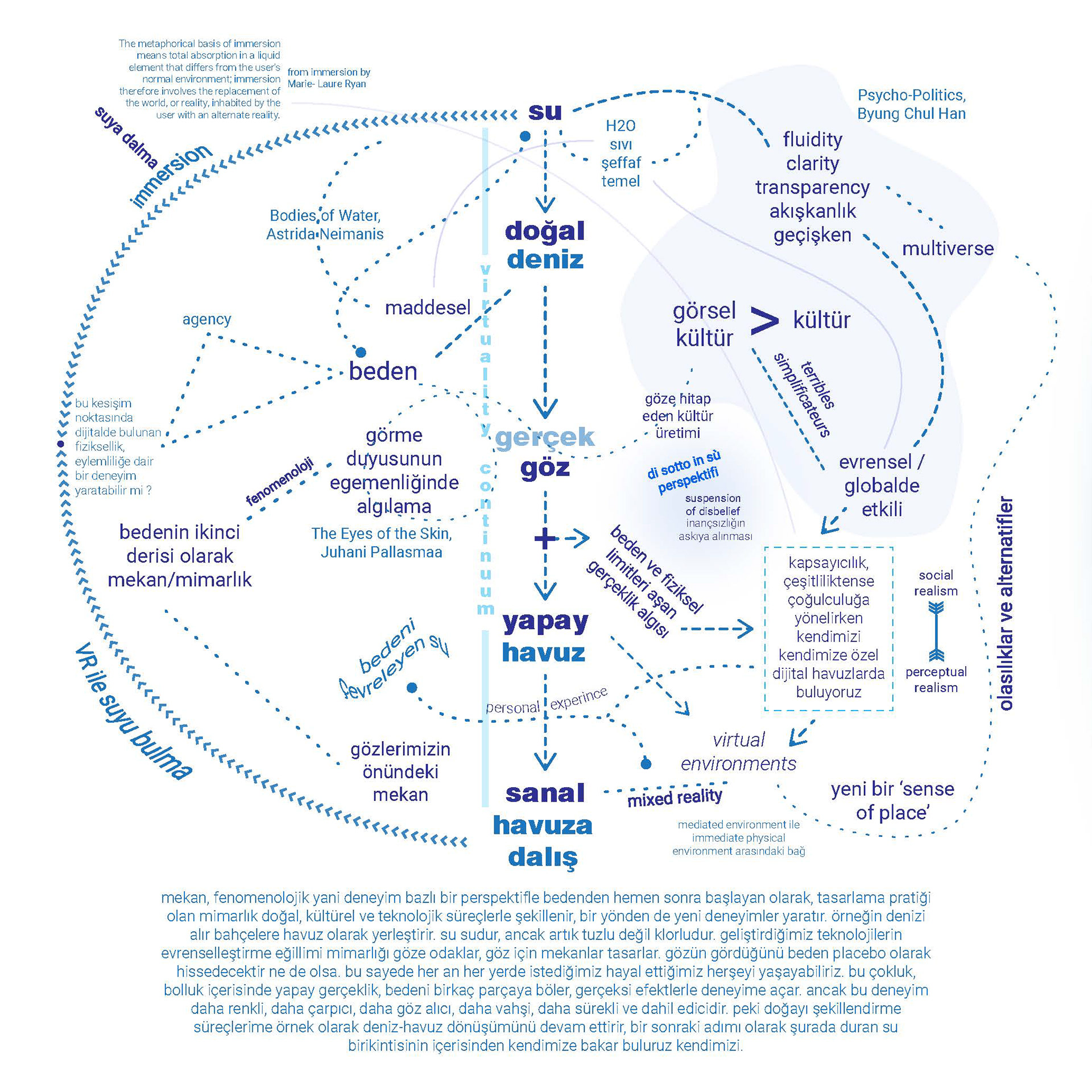 Looking at water for a critical understanding of the virtuality continuum, The Pull is a virtual reality installation where we find ourselves in a five-liter pool, same as the volume of blood circulating inside our body. Critically following the transformation of seas into pools and later into pixel clouds, the VR experience eases into the boundaries broken through artificiality and digitalization of our physical relationships with the Earth.